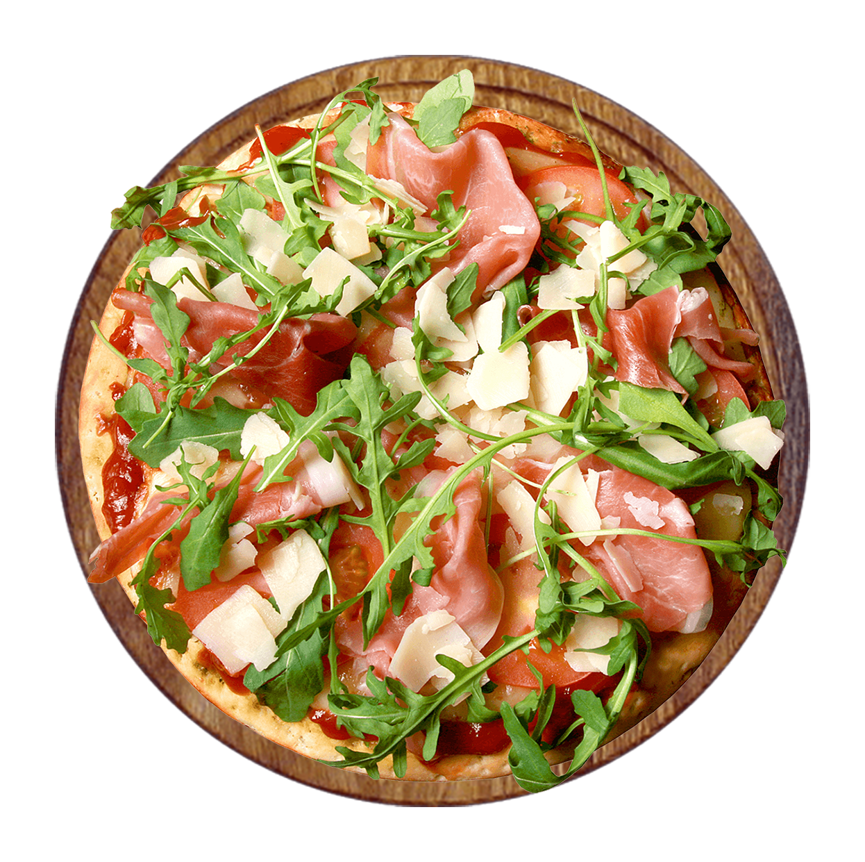 Sauce tomate, mozzarella, champignons, olives, oignons, poivrons.
